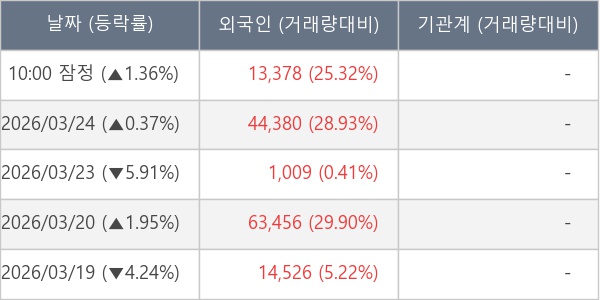 [표] 외국인ㆍ기관 순매매량 (단위 주)