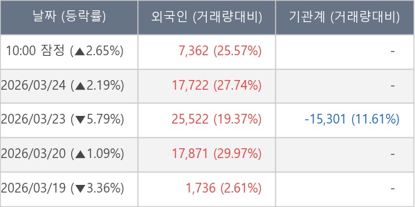 [표] 외국인ㆍ기관 순매매량 (단위 주)