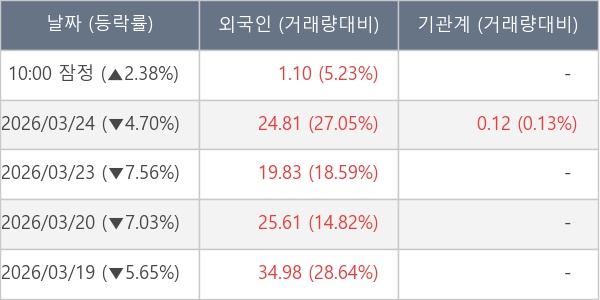 [표] 외국인ㆍ기관 순매매량 (단위 만주)