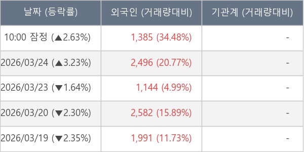 [표] 외국인ㆍ기관 순매매량 (단위 주)