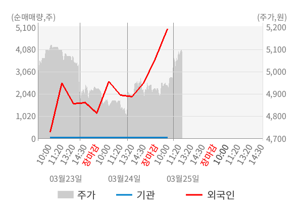 [서울=뉴스핌] 로보뉴스 = 25일 10시 15분 현재 위세아이텍(065370)은 전일 대비 2.63% (현재가 5,080원) 상승했고, 외국인이 최근 7일 연속 순매수(누적 11,799주, 잠정) 행진을 하고 있다.