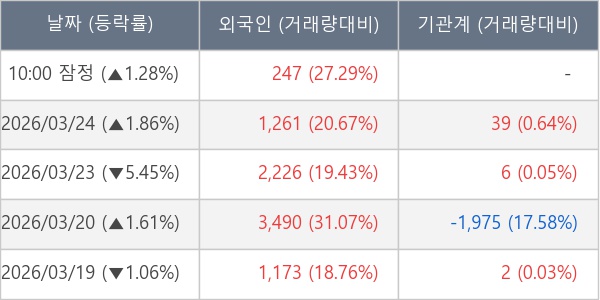 [표] 외국인ㆍ기관 순매매량 (단위 주)