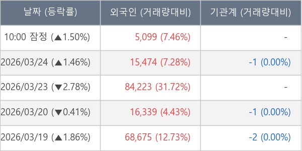[표] 외국인ㆍ기관 순매매량 (단위 주)