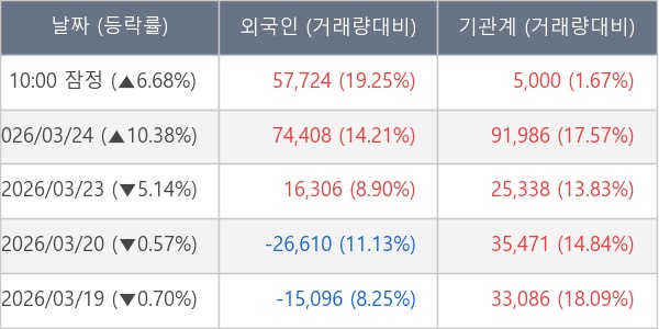 [표] 외국인ㆍ기관 순매매량 (단위 주)