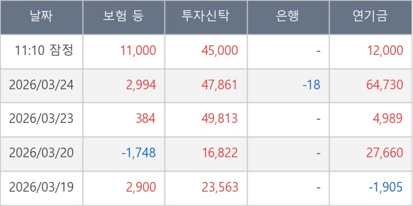 ※ 사모펀드 등 일부 기관의 순매매량은 표시되지 않음