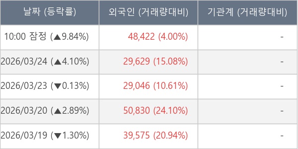 [표] 외국인ㆍ기관 순매매량 (단위 주)
