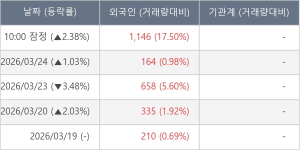 [표] 외국인ㆍ기관 순매매량 (단위 주)