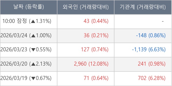 [표] 외국인ㆍ기관 순매매량 (단위 주)