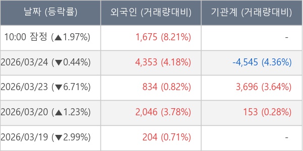 [표] 외국인ㆍ기관 순매매량 (단위 주)