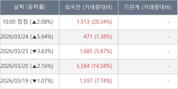[표] 외국인ㆍ기관 순매매량 (단위 주)