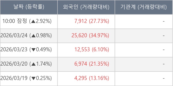 [표] 외국인ㆍ기관 순매매량 (단위 주)