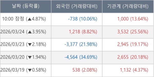 [표] 주요 기관별 순매매량 (단위 주)