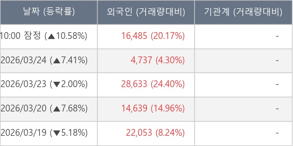 [표] 외국인ㆍ기관 순매매량 (단위 주)