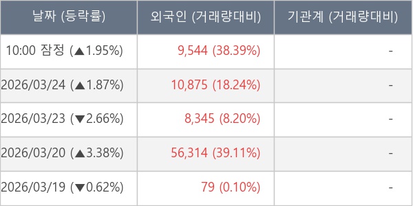 [표] 외국인ㆍ기관 순매매량 (단위 주)