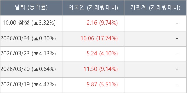 [표] 외국인ㆍ기관 순매매량 (단위 만주)
