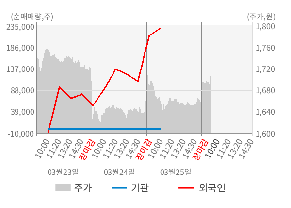 ※ 장중 매매동향은 잠정치이므로 실제 매매동향과 차이가 발생할수 있음