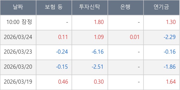 ※ 장중 매매동향은 잠정치이므로 실제 매매동향과 차이가 발생할수 있음