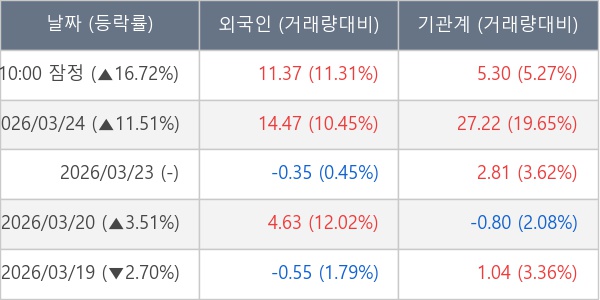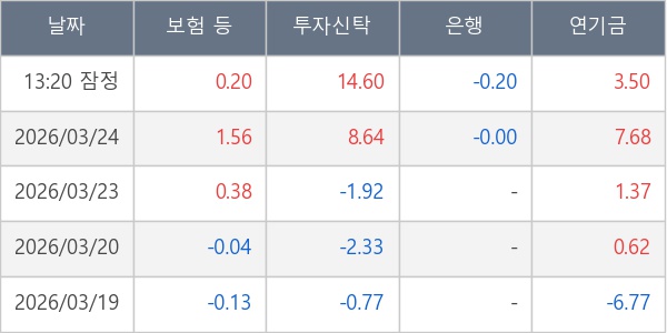 [표] 주요 기관별 순매매량 (단위 만주)