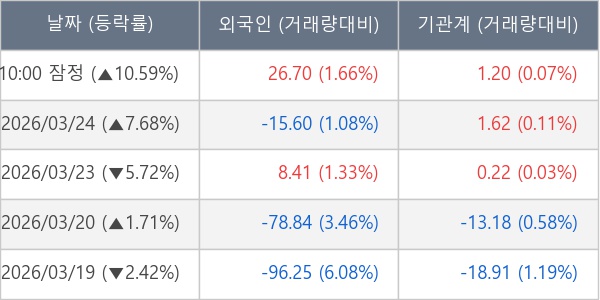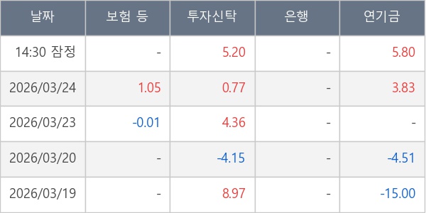 [표] 주요 기관별 순매매량 (단위 만주)
