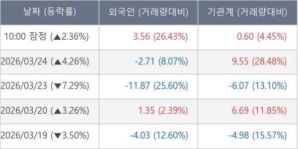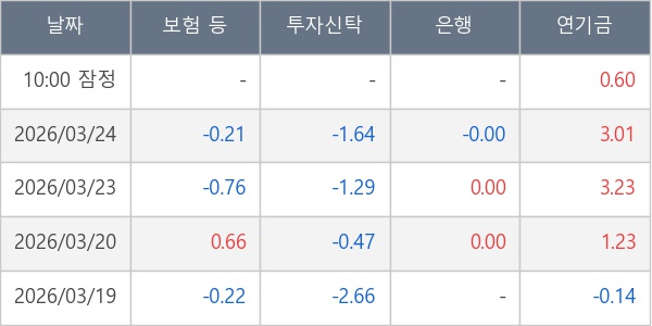 [표] 주요 기관별 순매매량 (단위 만주)