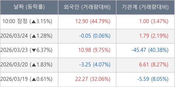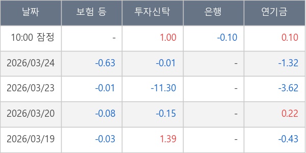 [표] 주요 기관별 순매매량 (단위 만주)