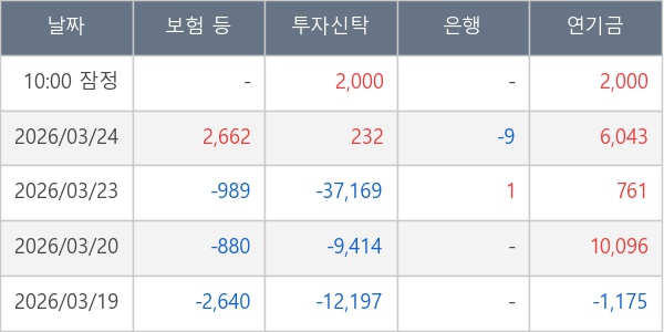 [표] 주요 기관별 순매매량 (단위 주)
