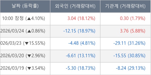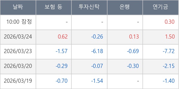[표] 주요 기관별 순매매량 (단위 만주)