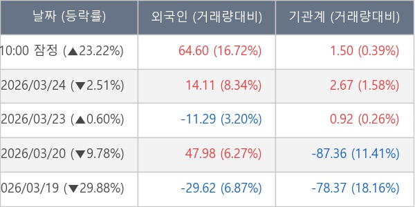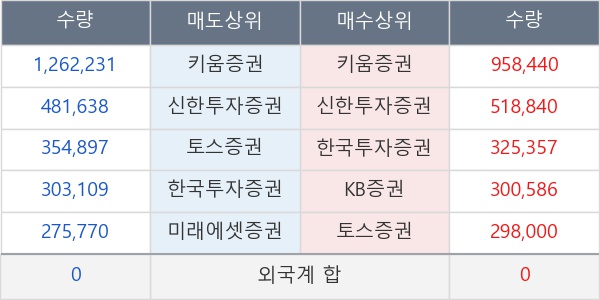 [표] 주요 기관별 순매매량 (단위 만주)