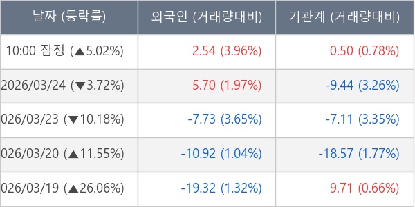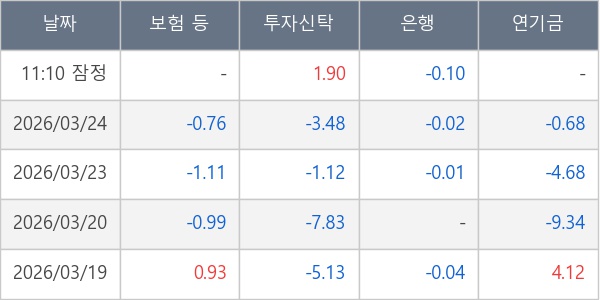 [표] 주요 기관별 순매매량 (단위 만주)