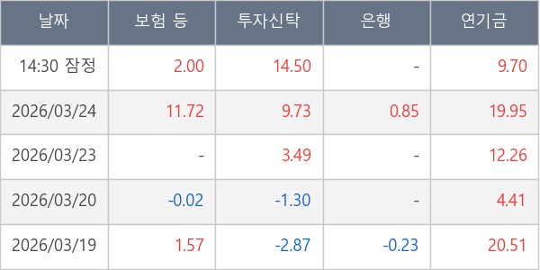 [표] 주요 기관별 순매매량 (단위 만주)