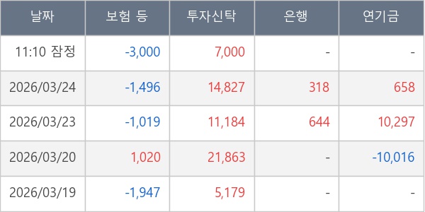 [표] 주요 기관별 순매매량 (단위 주)