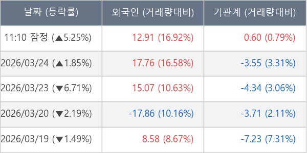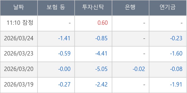 [표] 주요 기관별 순매매량 (단위 만주)