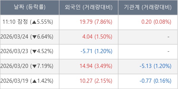 [표] 주요 기관별 순매매량 (단위 만주)