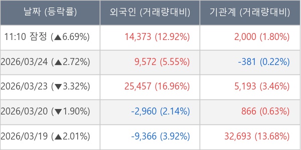 [표] 외국인ㆍ기관 순매매량 (단위 주)