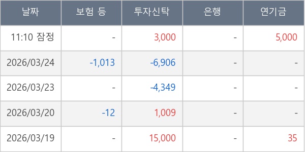 [표] 주요 기관별 순매매량 (단위 주)