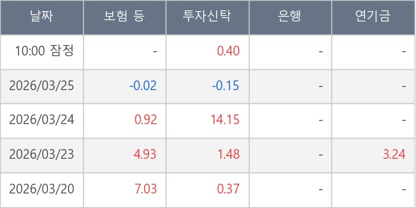 [표] 주요 기관별 순매매량 (단위 만주)