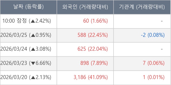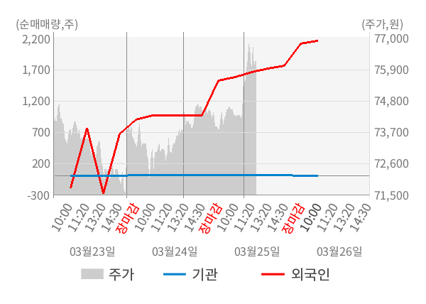 [서울=뉴스핌] 로보뉴스 = 26일 10시 15분 현재 부산산업(011390)은 전일 대비 2.42% (현재가 76,200원) 상승했고, 외국인이 최근 5일 연속 순매수(누적 5,357주, 잠정) 행진을 하고 있다.