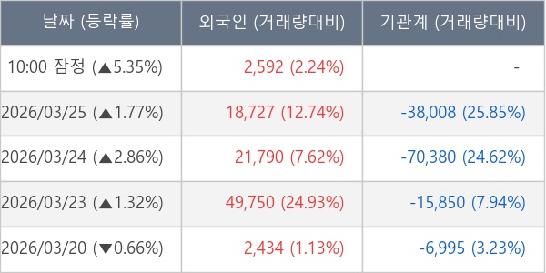 [표] 외국인ㆍ기관 순매매량 (단위 주)