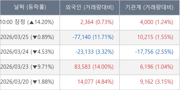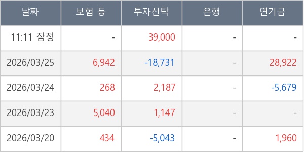 [표] 주요 기관별 순매매량 (단위 주)