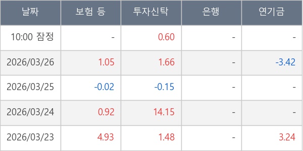 [표] 주요 기관별 순매매량 (단위 만주)