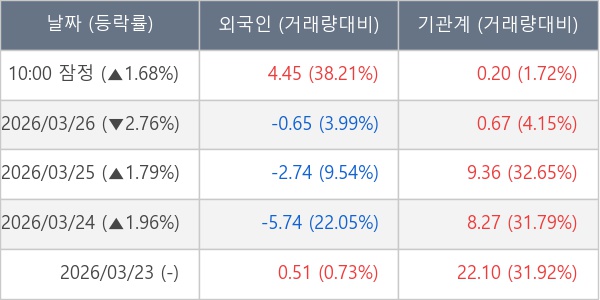 [표] 외국인ㆍ기관 순매매량 (단위 만주)