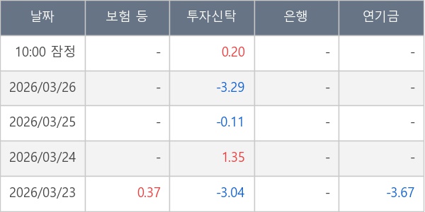 [표] 주요 기관별 순매매량 (단위 만주)