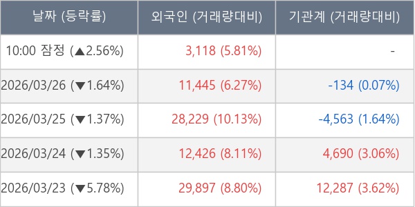 [표] 외국인ㆍ기관 순매매량 (단위 주)