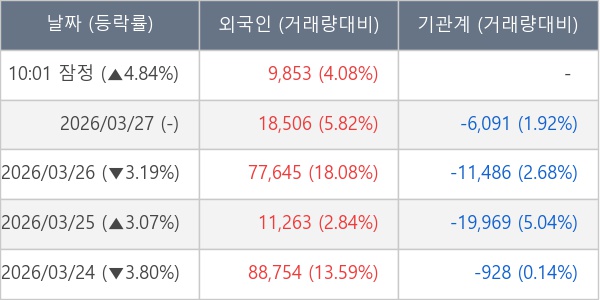 [표] 외국인ㆍ기관 순매매량 (단위 주)