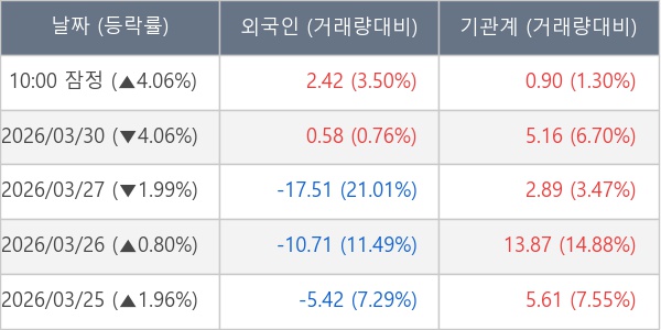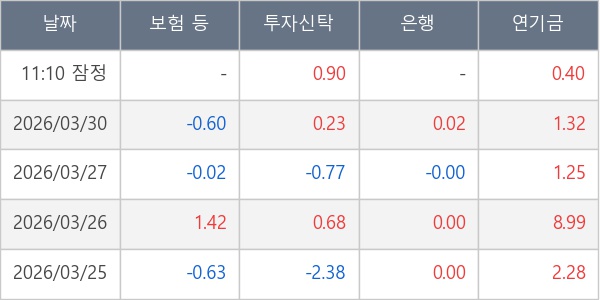 [표] 주요 기관별 순매매량 (단위 만주)