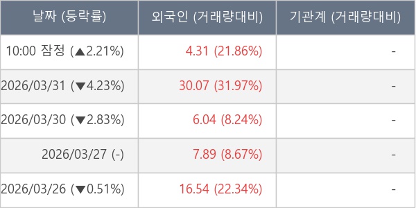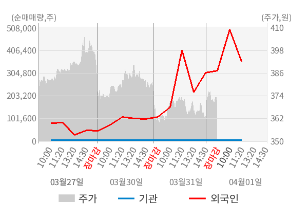 [표] 외국인ㆍ기관 순매매량 (단위 만주)