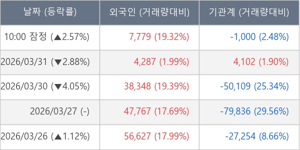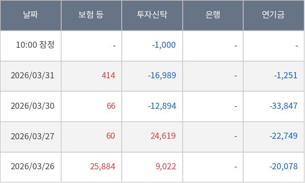 [표] 주요 기관별 순매매량 (단위 주)