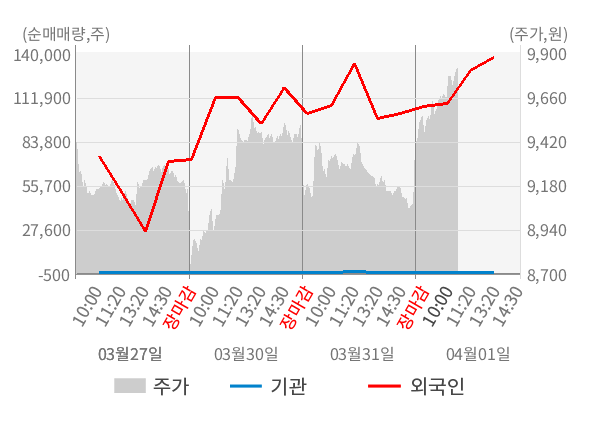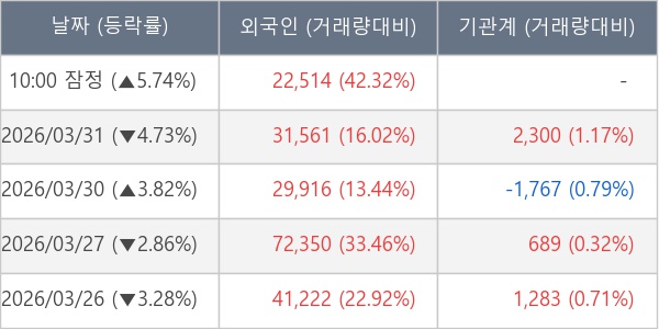 [표] 외국인ㆍ기관 순매매량 (단위 주)