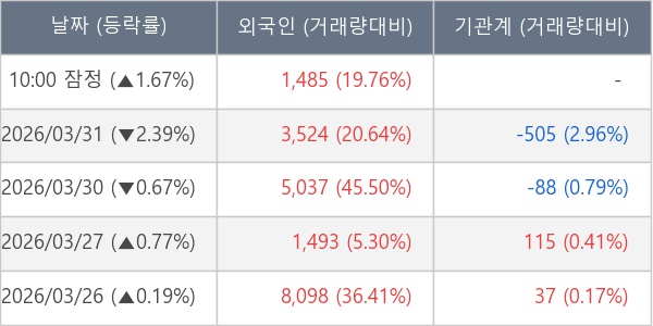 [표] 외국인ㆍ기관 순매매량 (단위 주)