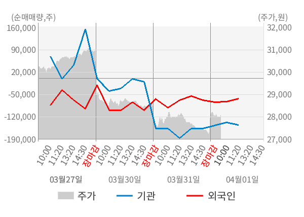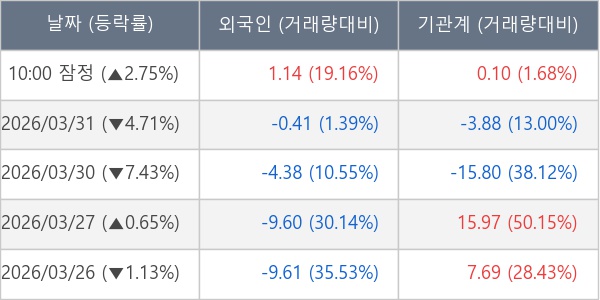 [표] 주요 기관별 순매매량 (단위 만주)